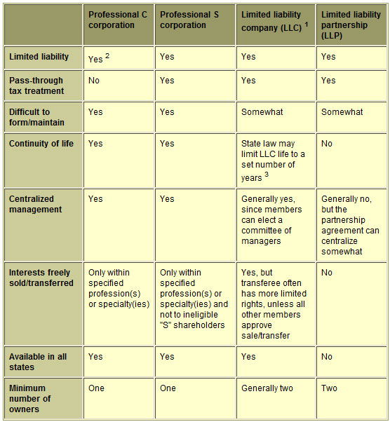 Comparison of LLCs, LLPs, and Professional Corporations