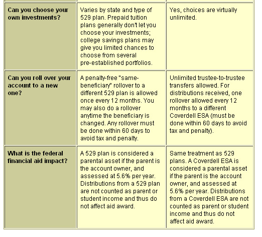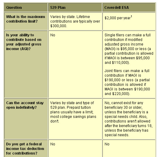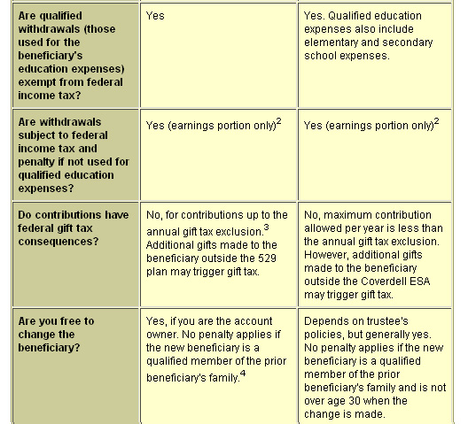 1 The provisions of the Economic Growth and Tax Relief Reconciliation Act of 2001 that raised the annual contribution limit for Coverdell ESAs to $2,000 will expire on December 31, 2010. Unless Congress extends the law, after December 31, 2010 the annual contribution limit for Coverdell ESAs will revert to $500, the limit in effect prior to January 1, 2002.2 A 10% federal penalty is assessed on the earnings portion of all nonqualified withdrawals from a 529 plan and a Coverdell ESA. The penalty generally doesn't apply to nonqualified withdrawals made due to the beneficiary's death, disability, or receipt of a tax-free scholarship (to the extent of the scholarship's value). 3 The annual gift tax exclusion is currently $13,000. However, you may contribute up to $65,000 to a 529 plan in one year (for the same beneficiary) and not owe gift tax if you elect to spread the gift over a five-year period and you make no additional gifts to the beneficiary during that period. 4 Qualified family members include children and their descendants, stepchildren, siblings, stepsiblings, parents, stepparents, nieces, nephews, aunts, uncles, first cousins, and in-laws of the original beneficiary. Investors should consider the investment objectives, risks, charges and expenses associated with 529 plans carefully before investing. More information about 529 plans is available in the issuer's official statement, which should be read carefully before investing. Also, before investing, consider whether your state offers a 529 plan that provides residents with favorable state tax benefits. The availability of the tax or other benefits mentioned above may be conditioned on meeting certain requirements.