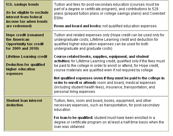 The term "qualified education expenses" is used frequently in education circles, but it can mean various things depending on the context. This table describes what the term means in specific situations. (Note: The term "post-secondary education" includes graduate school unless otherwise noted.)