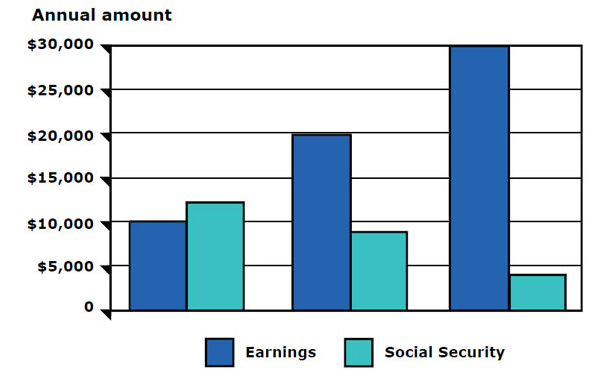 $1 for every $2 of earnings in excess of $14,160.* The chart below shows the effect of annual earnings of